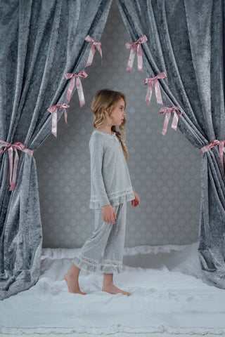 Our collection of pajamas and nightdresses is a tribute to slow evenings, soft fabrics, and stories whispered under the covers. Each piece is chosen for its delicate design, luxurious touch, and timeless magic — made to wrap little ones in comfort and wonder.